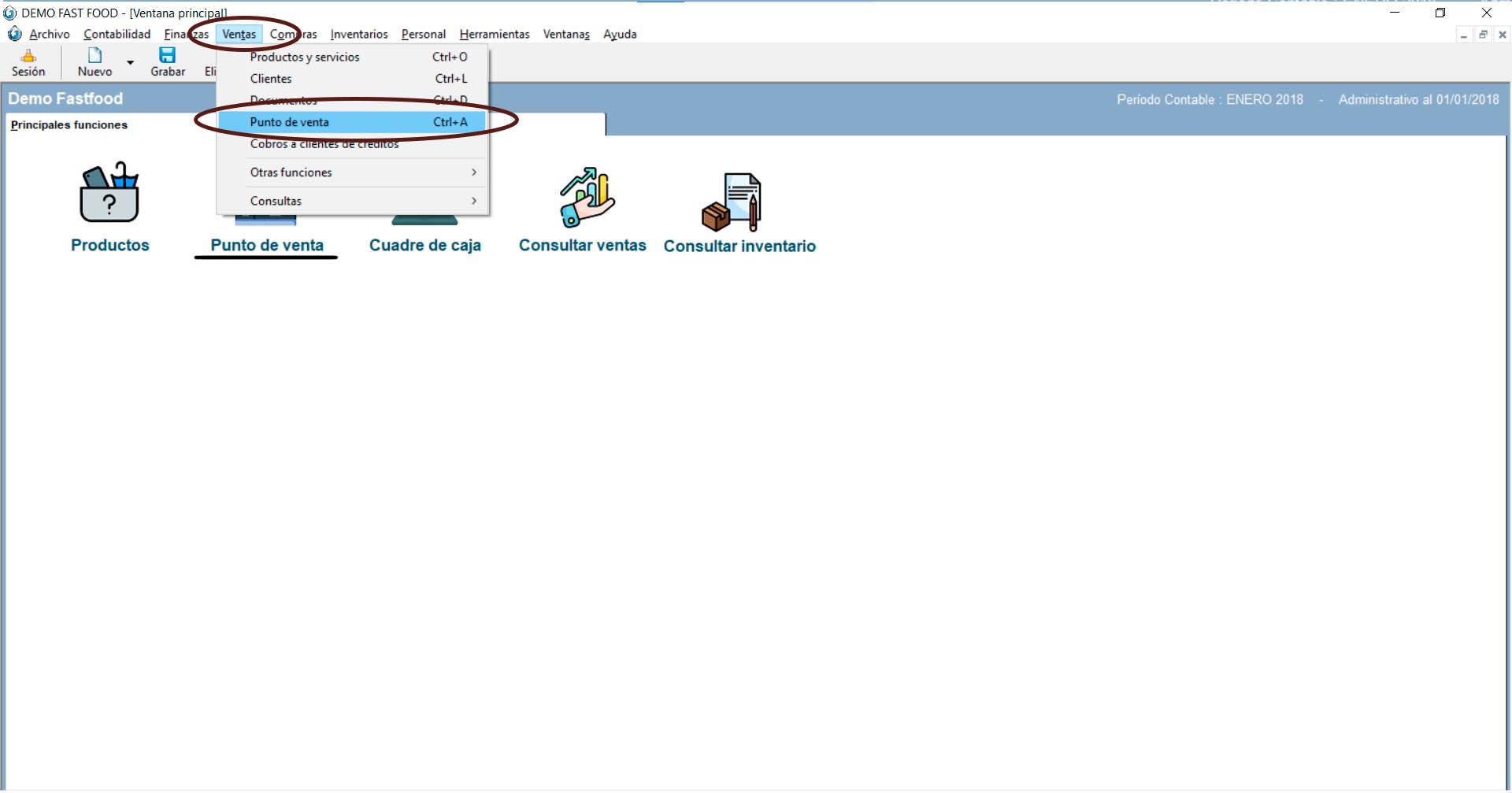- Haz clic en el icono de «Punto de ventas» (POS)…“ REFERENCIA “ o desde el menú «Ventas > punto de ventas»……“ REFERENCIA “