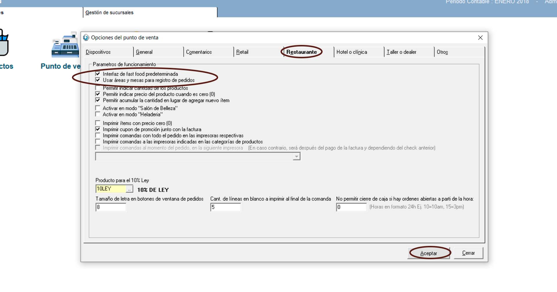 - Luego haz clic en el Check «Usar áreas y mesas de registro de pedidos …» Y clic en aceptar..…“ REFERENCIA “