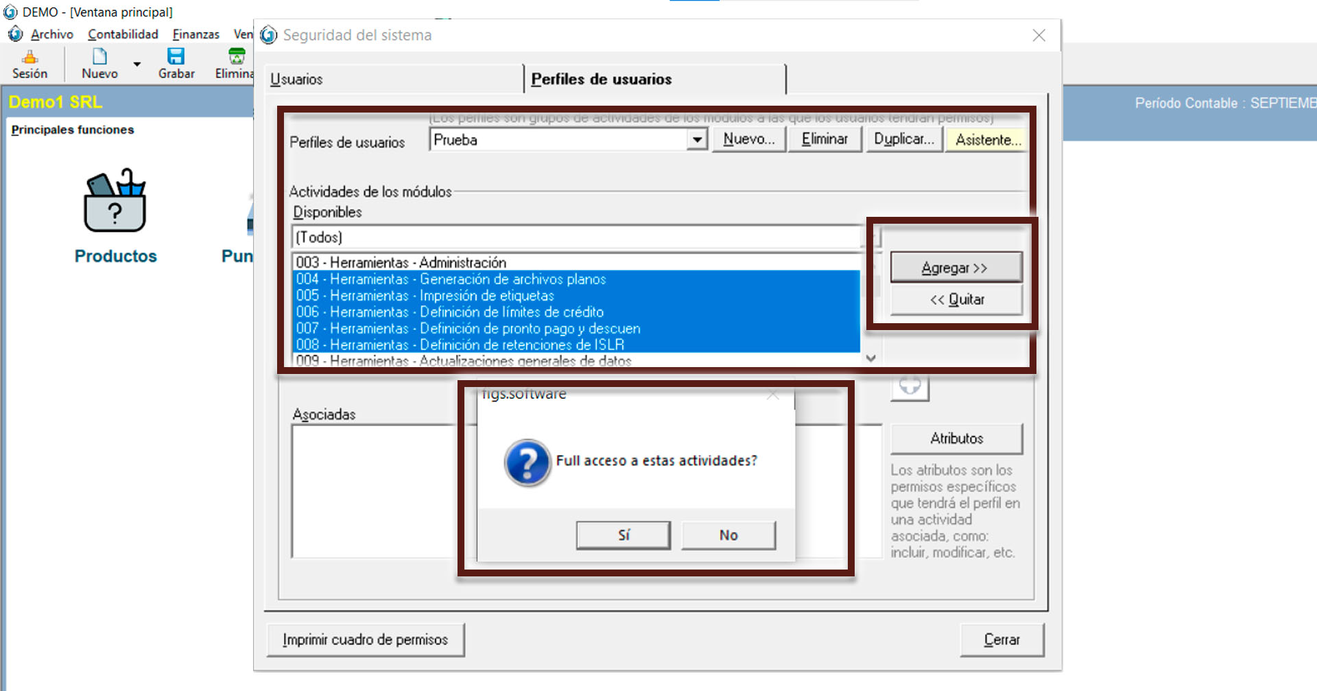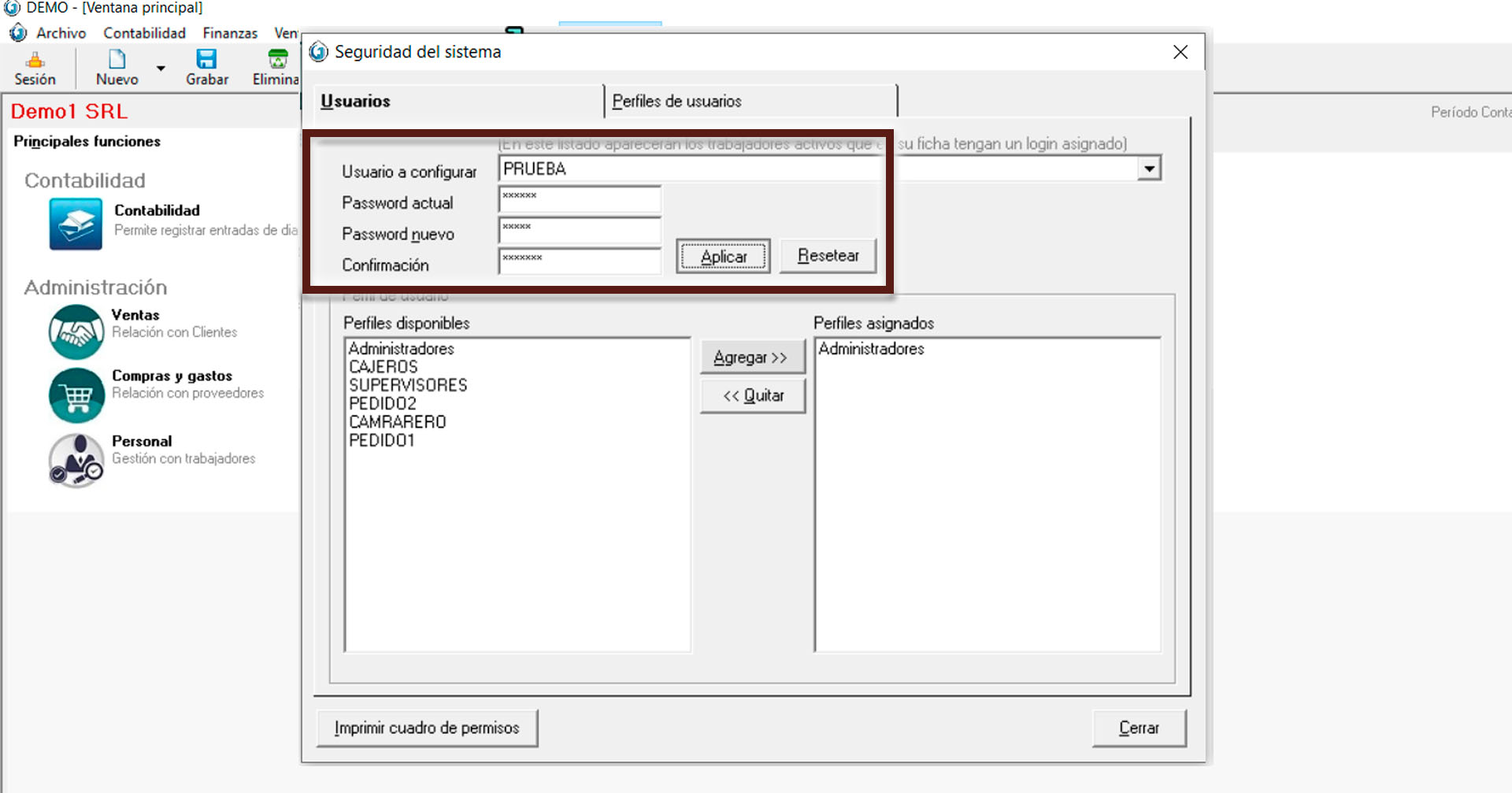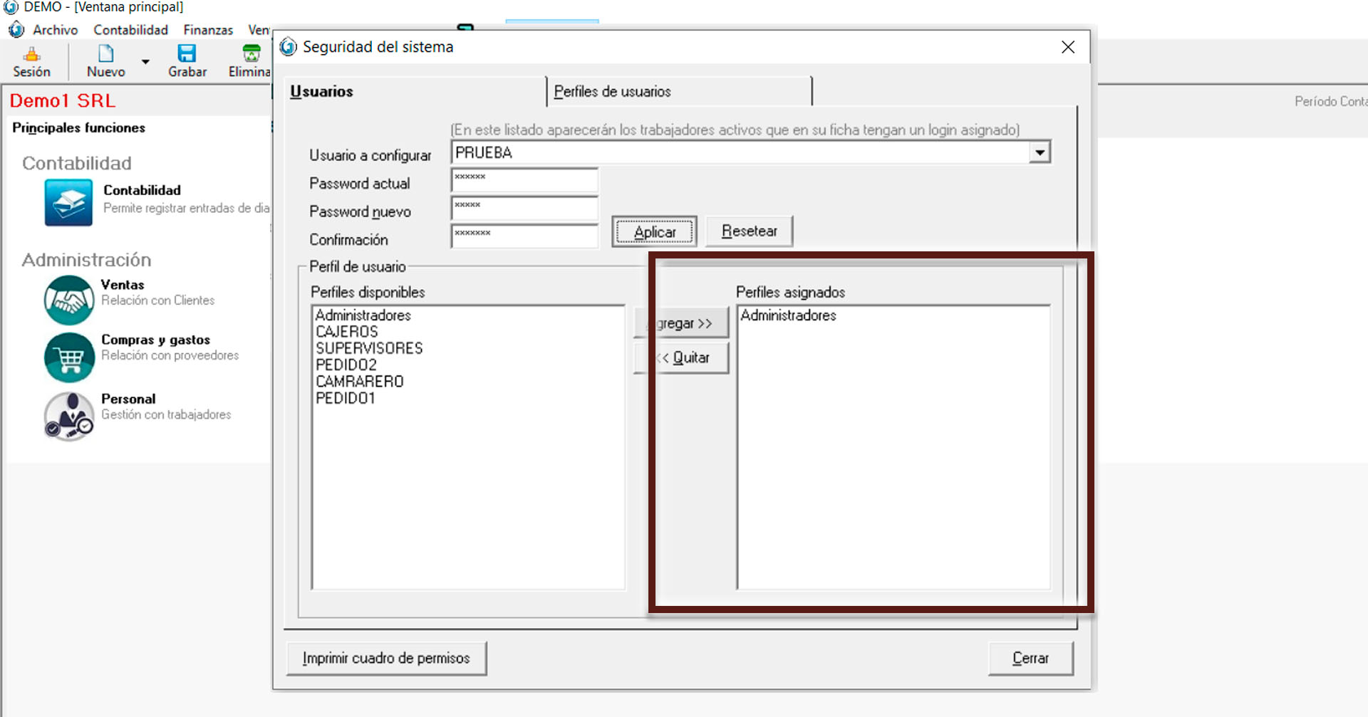 : Son los perfiles de permisos de uso del sistema, los cuales serán asignados a los usuarios