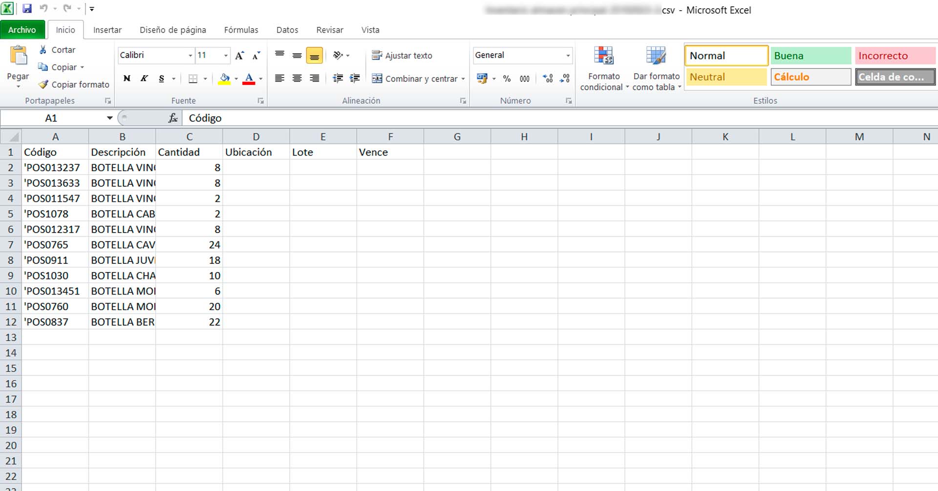 - Es posible que tenga un archivo de MS Excel con la primera línea de títulos de 3 columnas: CÓDIGO DEL PRODUCTO, CANTIDAD Y PRECIO UNITARIO SIN IMPUESTOS y a partir de la 2° línea, el listado de productos o servicios a incluir en una venta…»REFERENCIA»