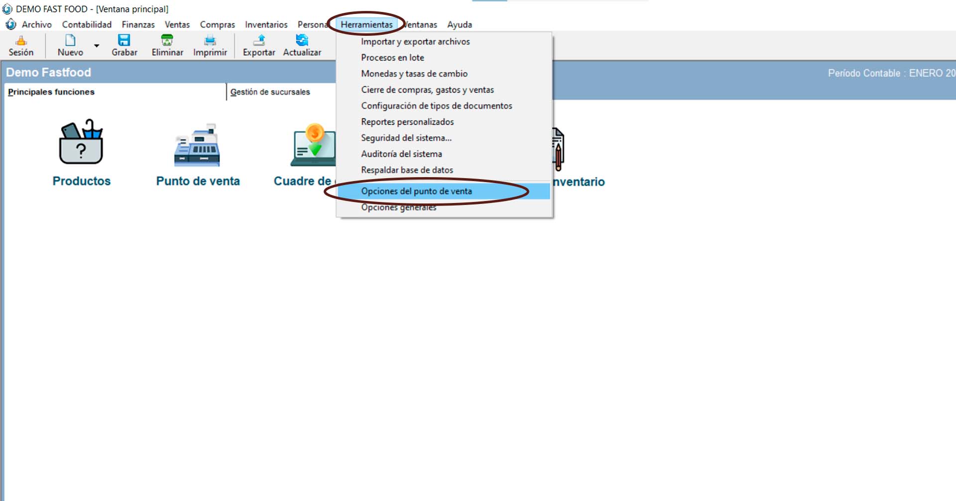 1. Haz clic en el menú «herramientas > opciones del punto de venta»…“ REFERENCIA “