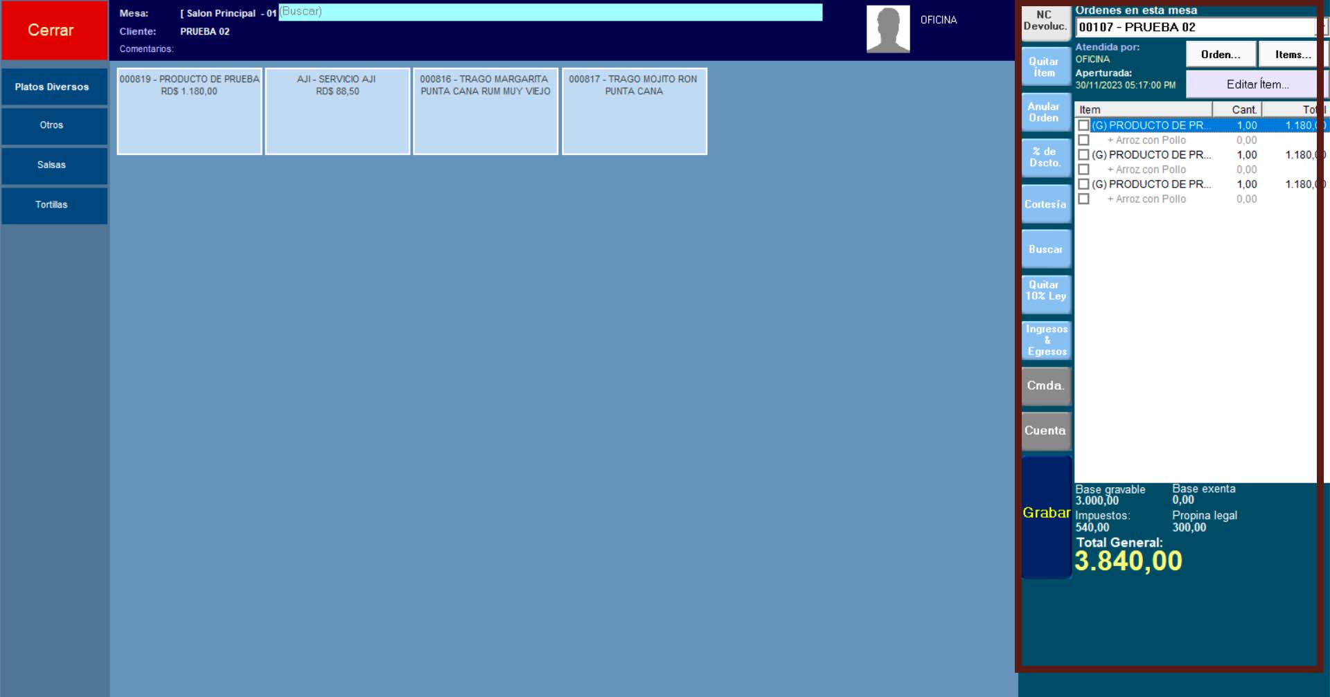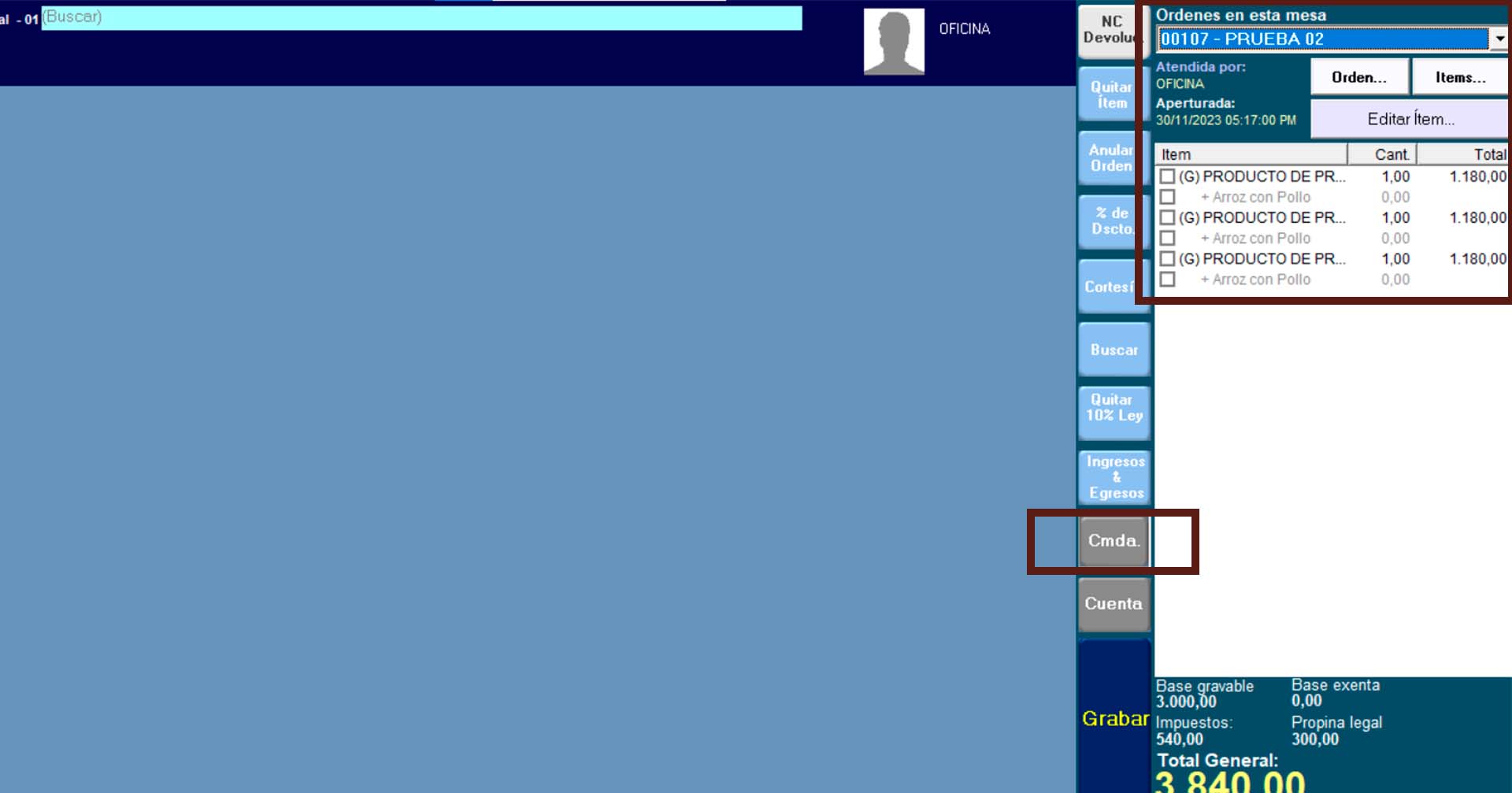 La comanda es el soporte documental o vale que se imprime cuando el cliente solicite los productos o los ítems para la preparación de su pedido a la cocina. Para su configuración debe estar instalada los drivers de la impresora de Windows.