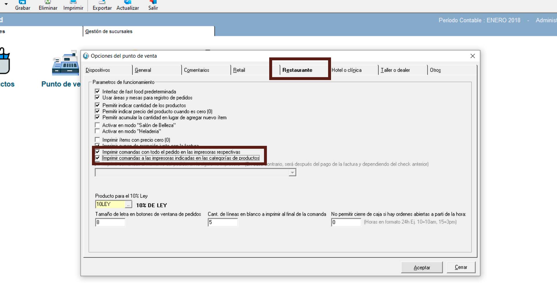 3. Active la casilla: «Imprimir comandas con todo el pedido en las impresoras respectivas (en caso contrario, será solo los ítems que correspondan al área)«