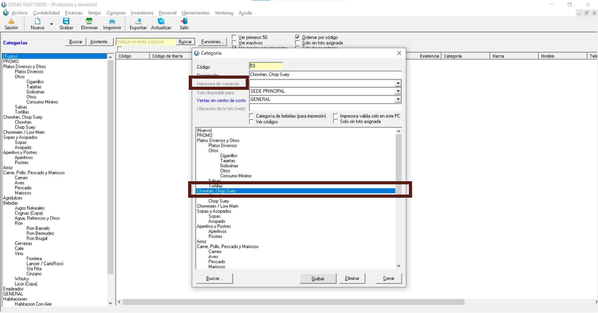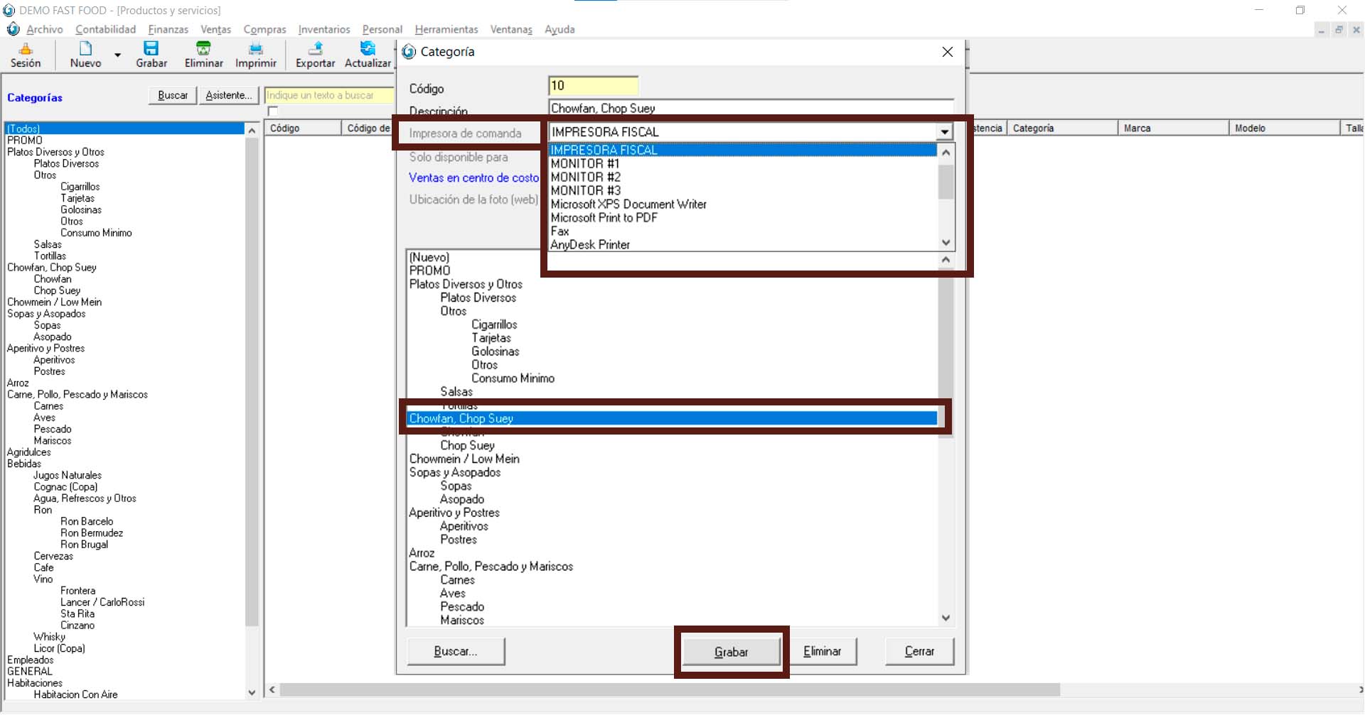 Se imprimirá todo lo que pertenezca en dicha categoría. Para este punto de configuración es ir a