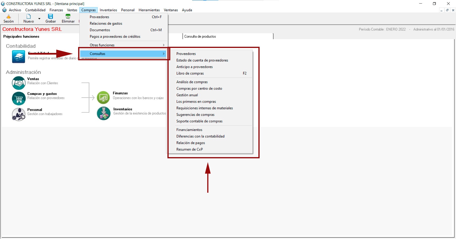-Ingresamos al Menú > Compras > Consultas >…“REFERENCIA” se abrirá un Submenú