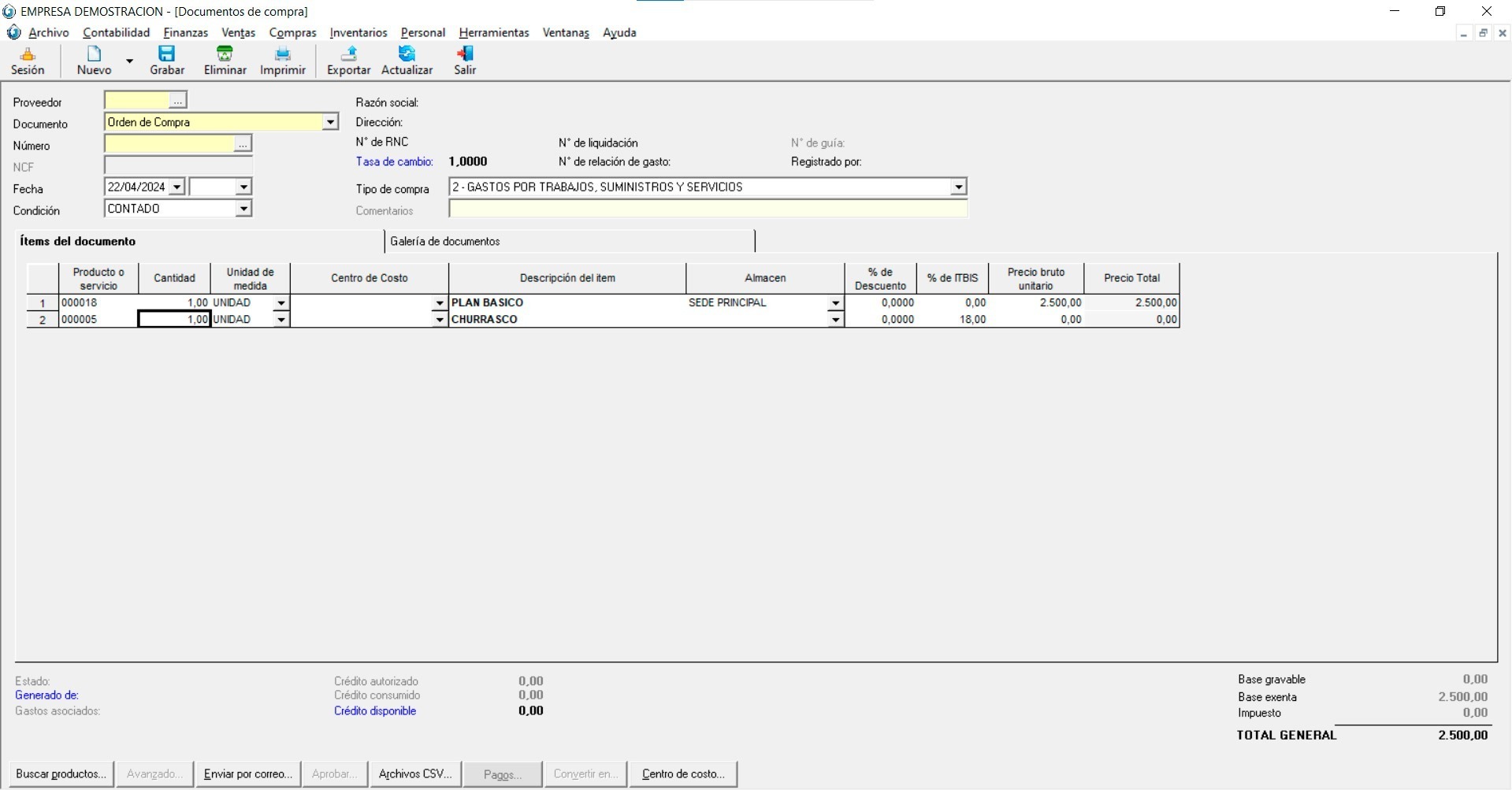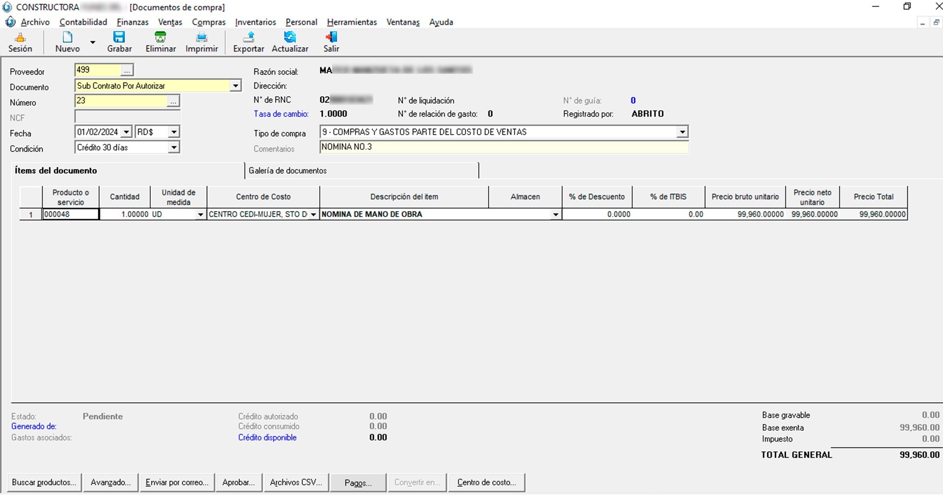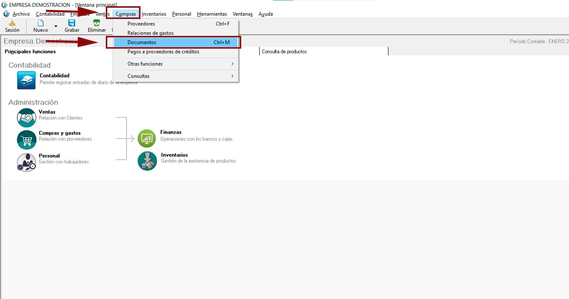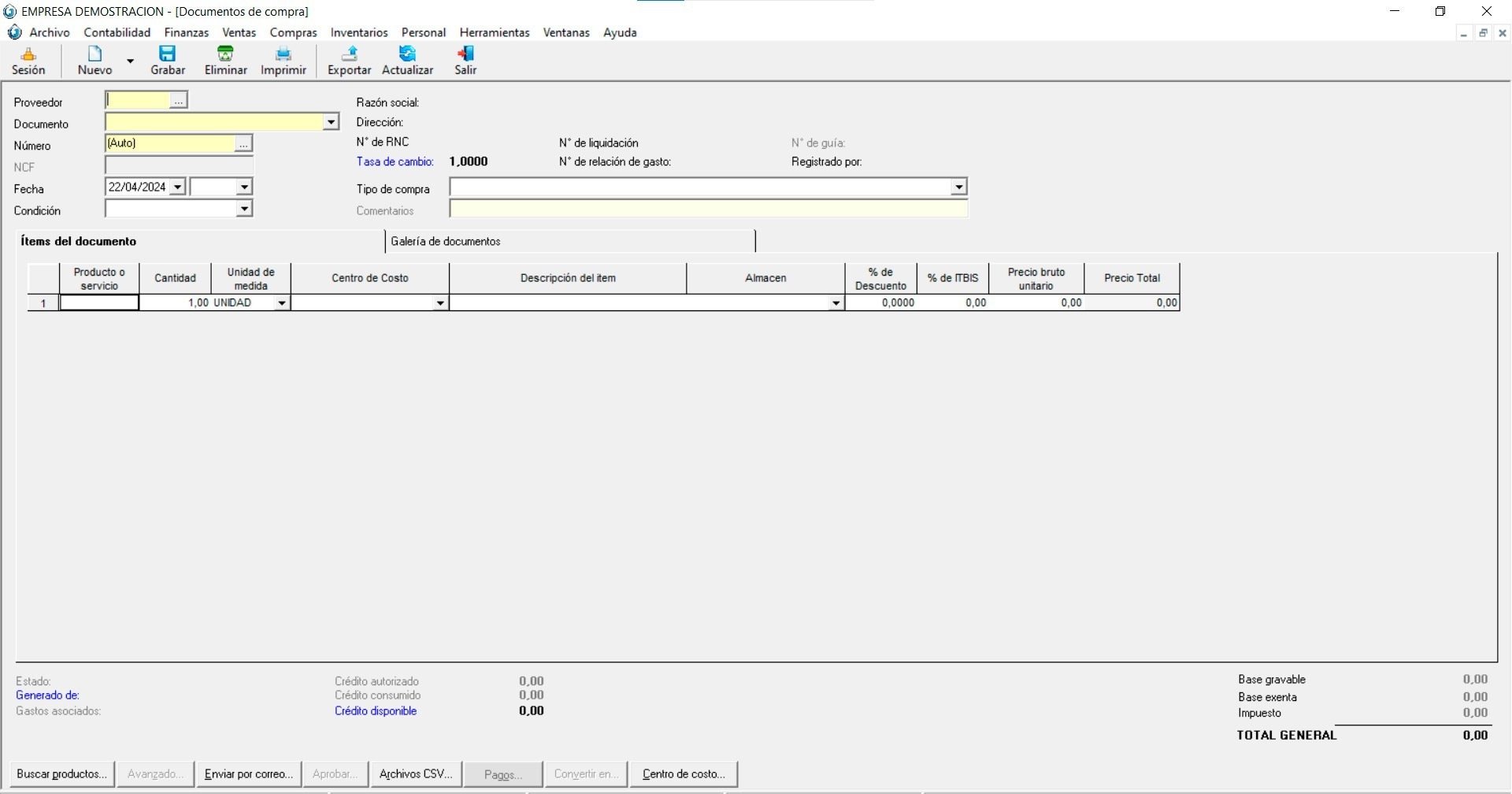 -O haciendo clic en el menú «Nuevo»… “REFERENCIA”, Podremos registrar un nuevo documento de compra