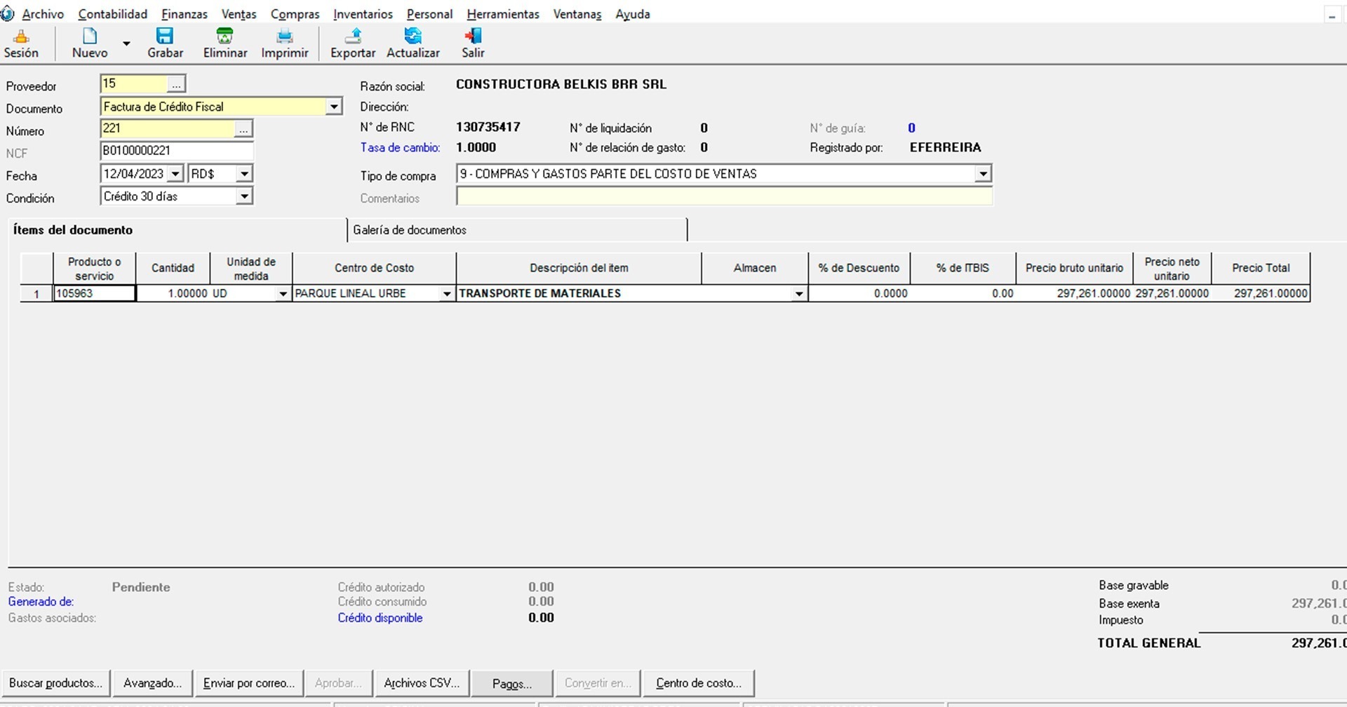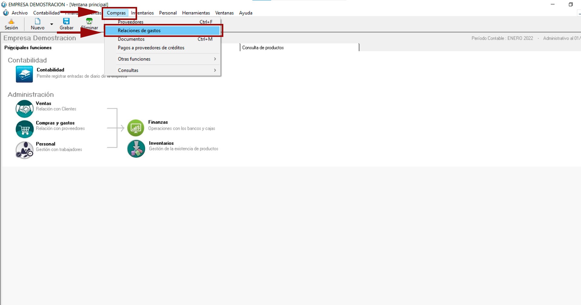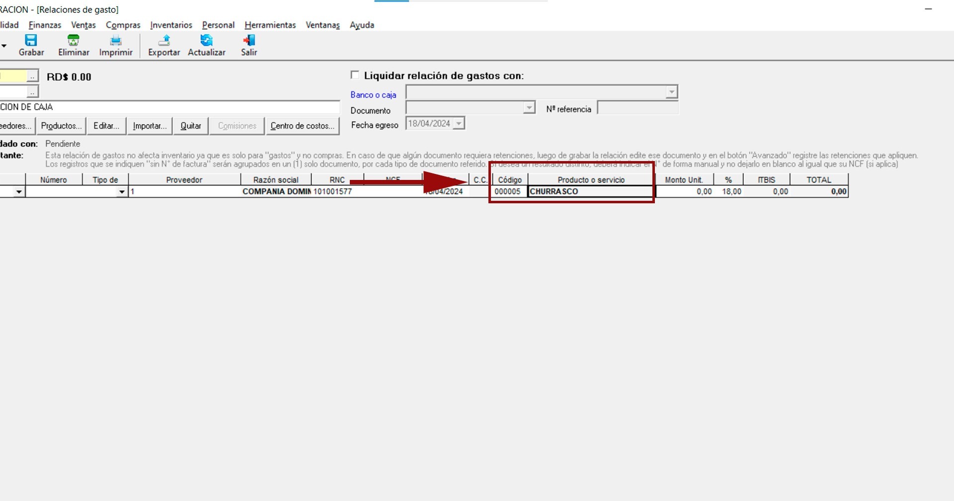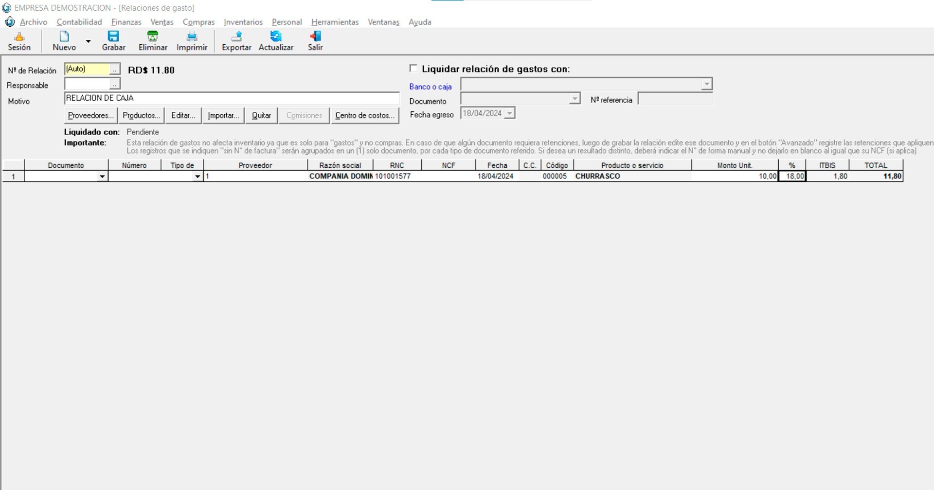 -Ingresamos al Menú > Compras > Relaciones de gastos >…“REFERENCIA” se abrirá la siguiente ventana… “REFERENCIA”