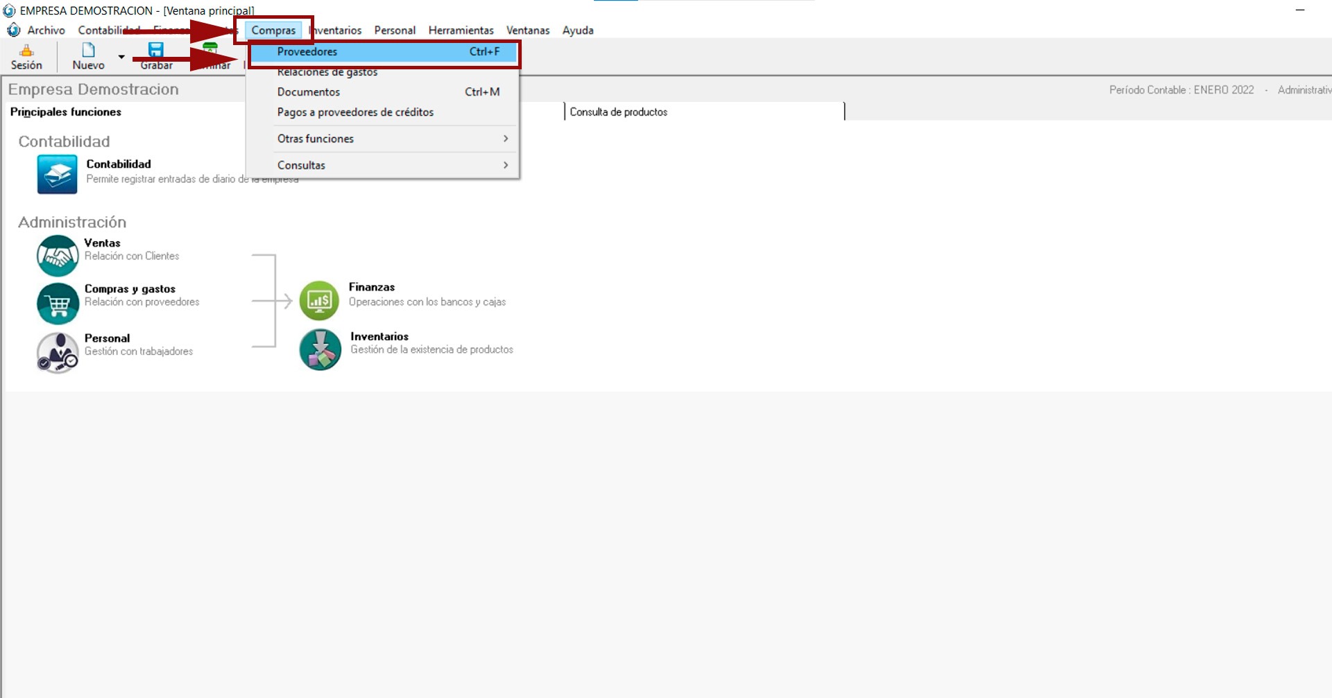 -Ingresamos al Menú > Compras > Proveedores >…“REFERENCIA” se abrirá la siguiente ventana… “REFERENCIA”
