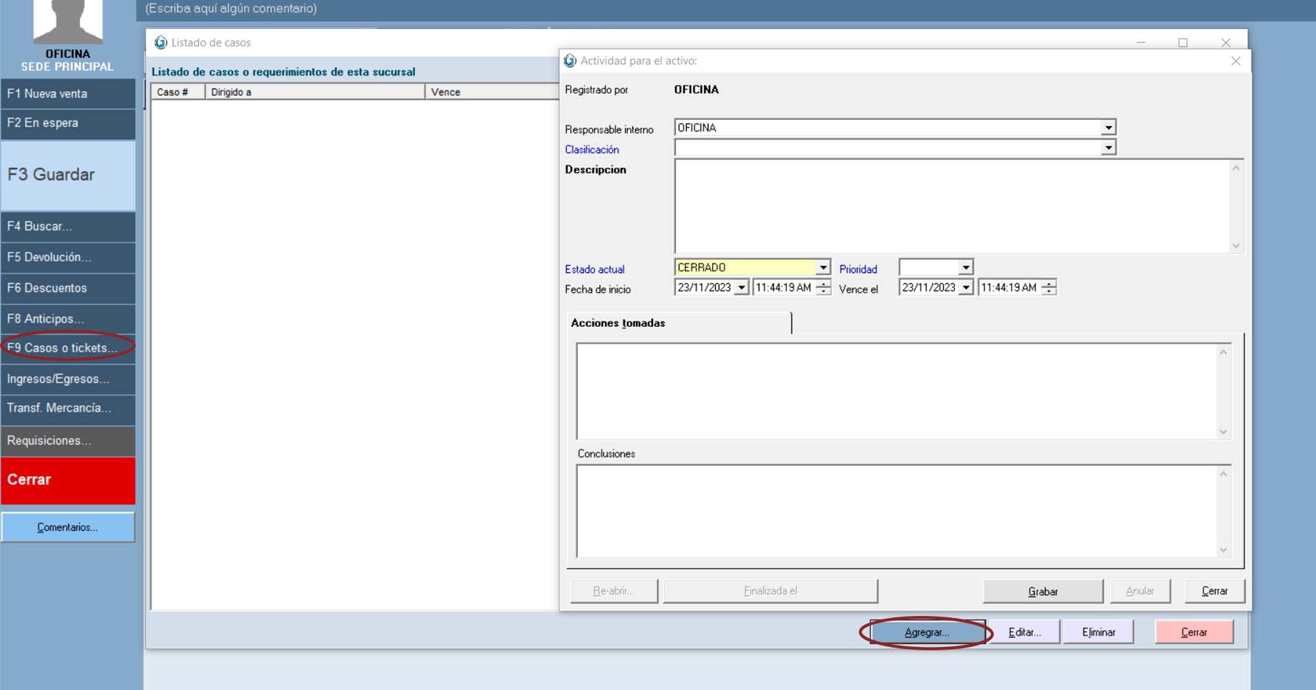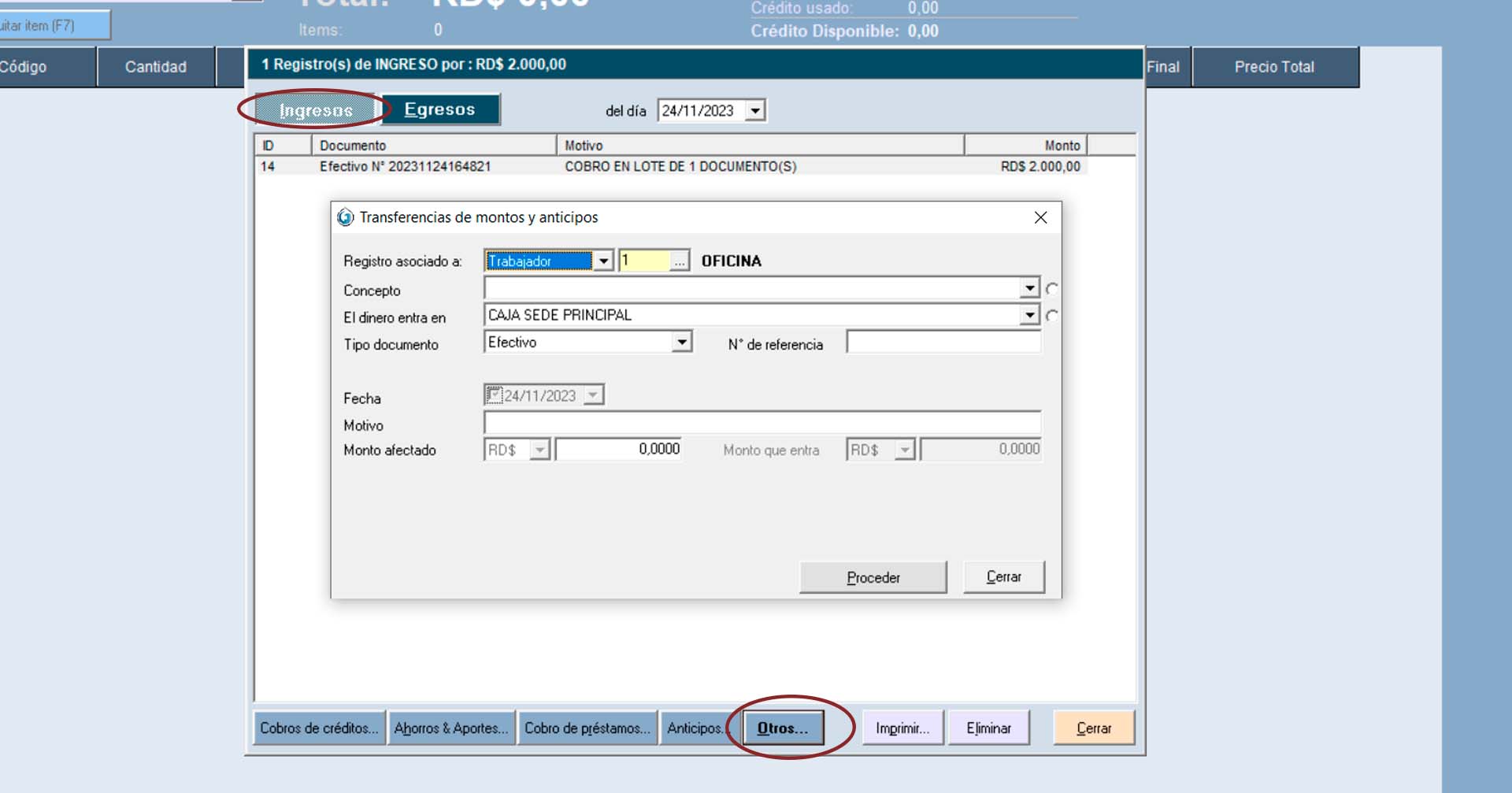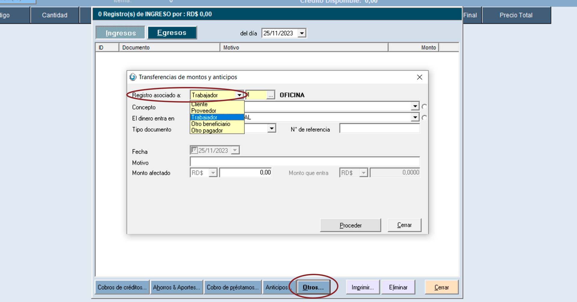 AGREGAR OTROS: Permite registrar otros ingresos por parte del cajero…”REFERENCIA”- Seleccione a quien esta asociada el registro …”REFERENCIA” . …”REFERENCIA”