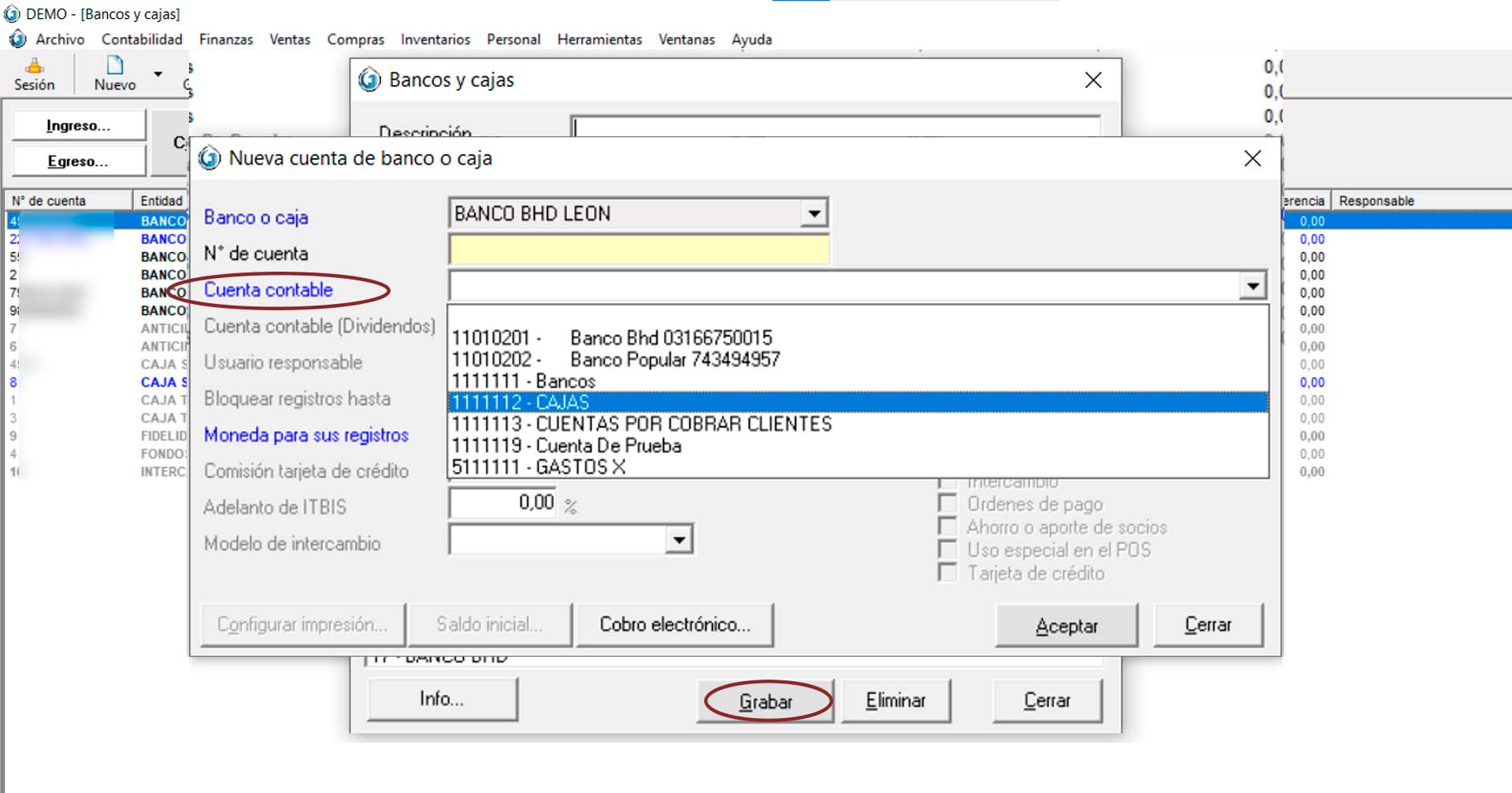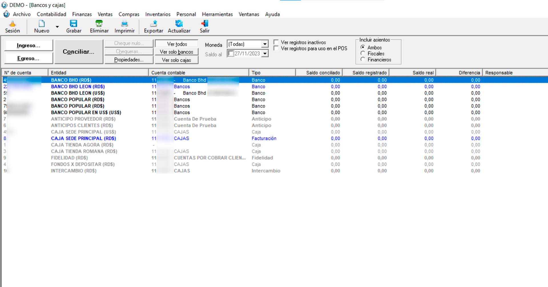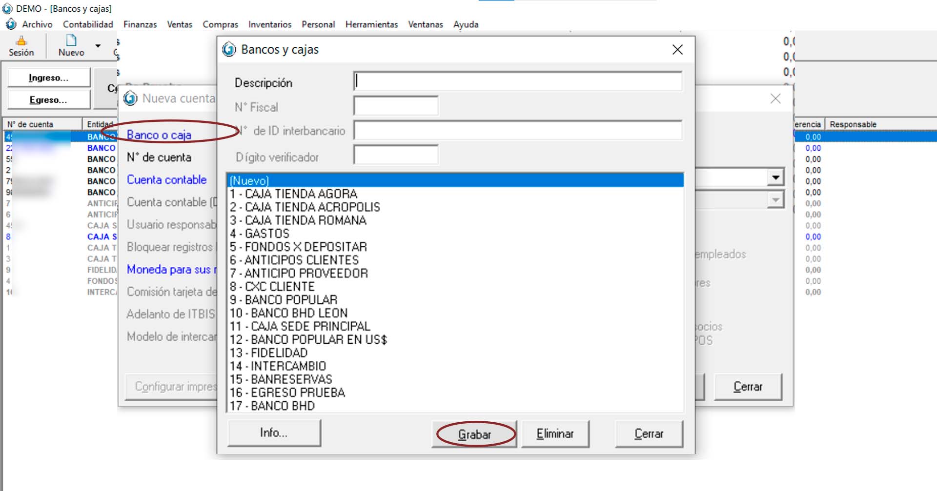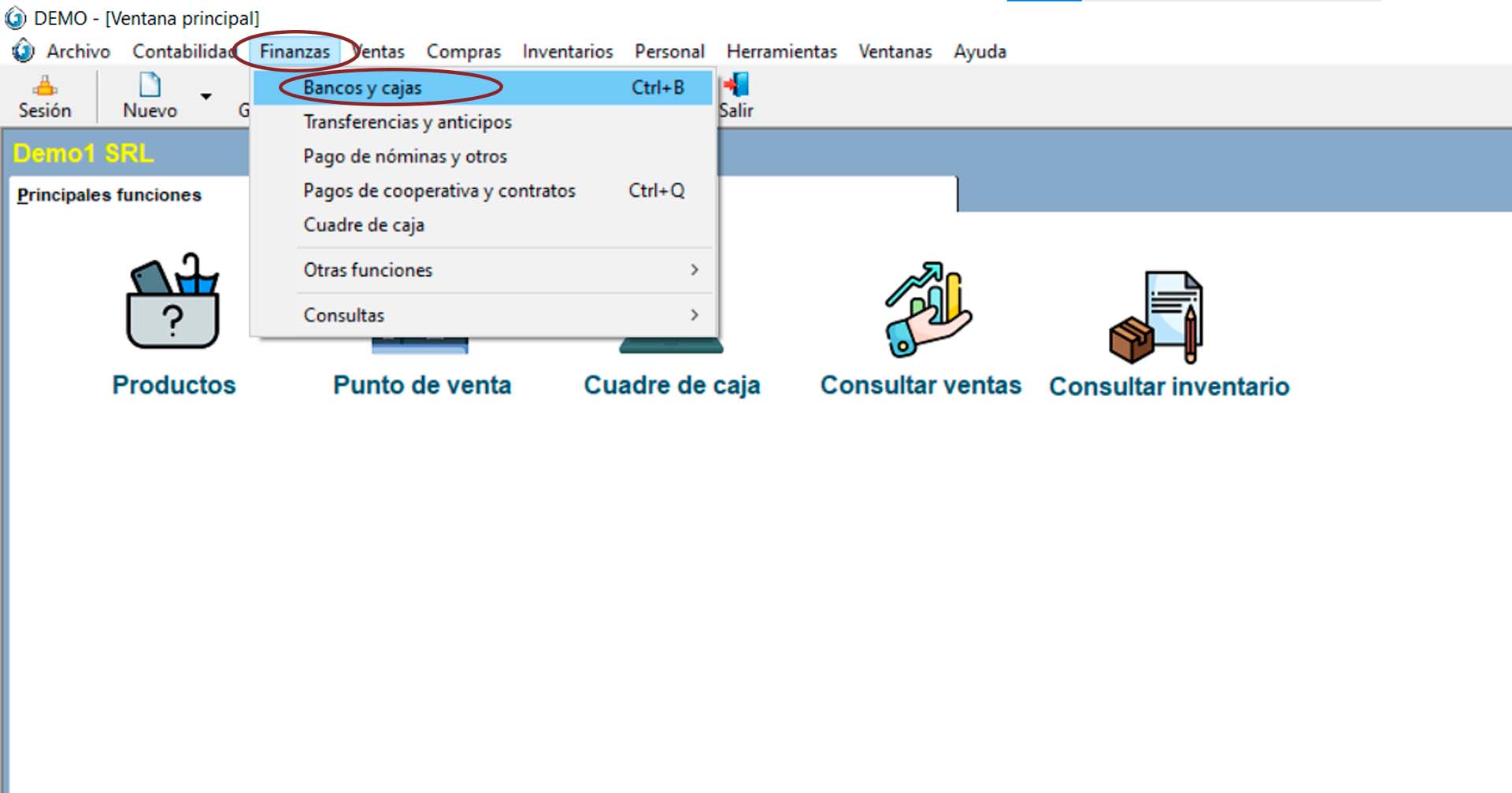 - Haga clic en el menú «Bancos > Bancos y cajas«…”REFERENCIA” . …”REFERENCIA”