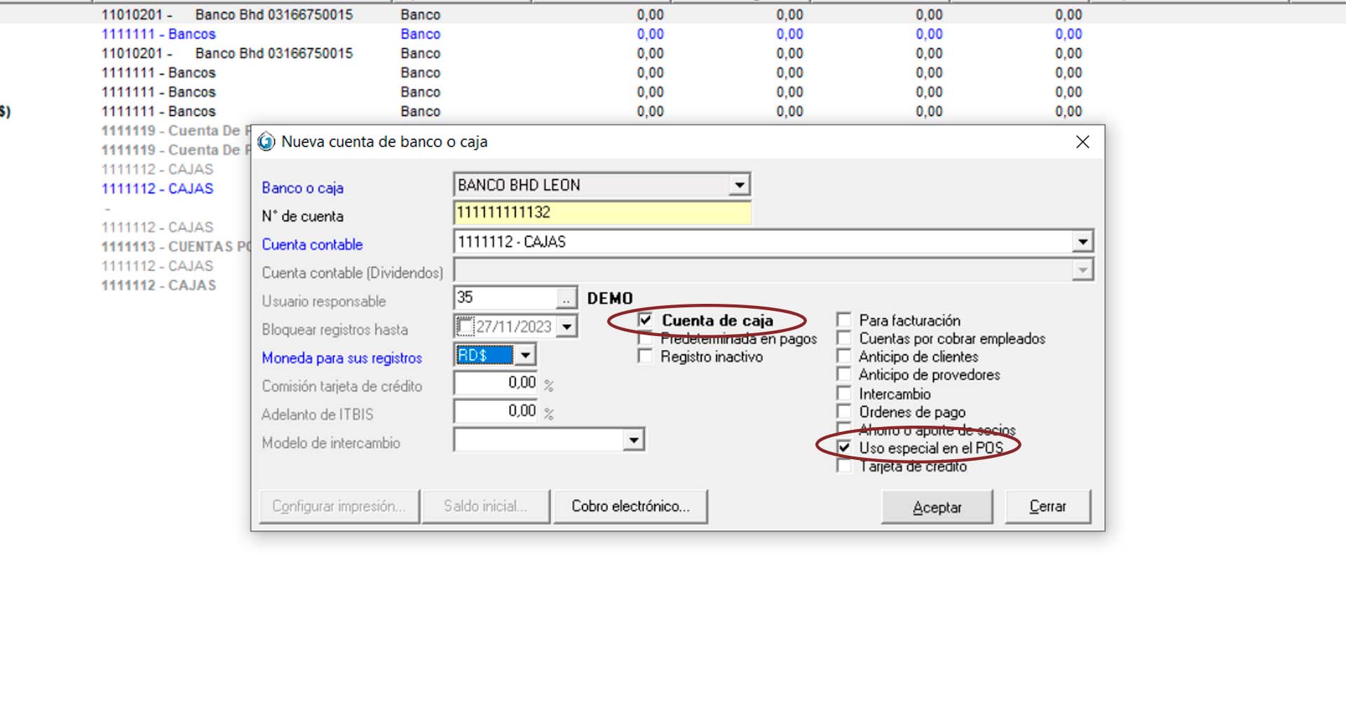 - Active la casilla de verificación «Cuenta de tipo caja» y luego la casilla «Para uso en el POS«…”REFERENCIA”