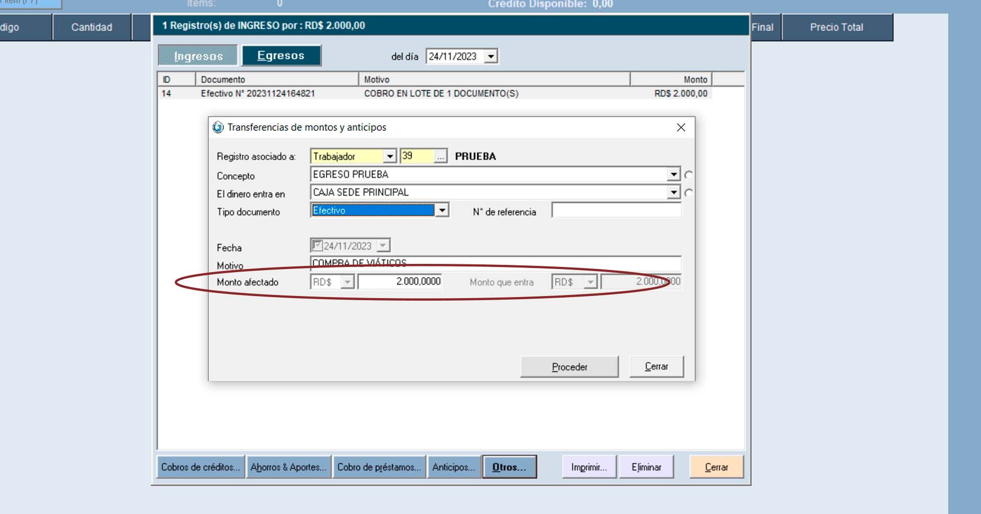 -Monto afectado…”REFERENCIA” - Haga clic en el botón “Proceder“…”REFERENCIA”