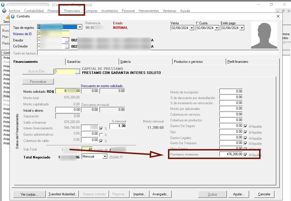 Cuando se hace una solicitud de Préstamo nuevo y el cliente tiene una deuda actual en una cuenta, el oficial de crédito debe indicar ese monto de la deuda para descontar en el préstamo nuevo