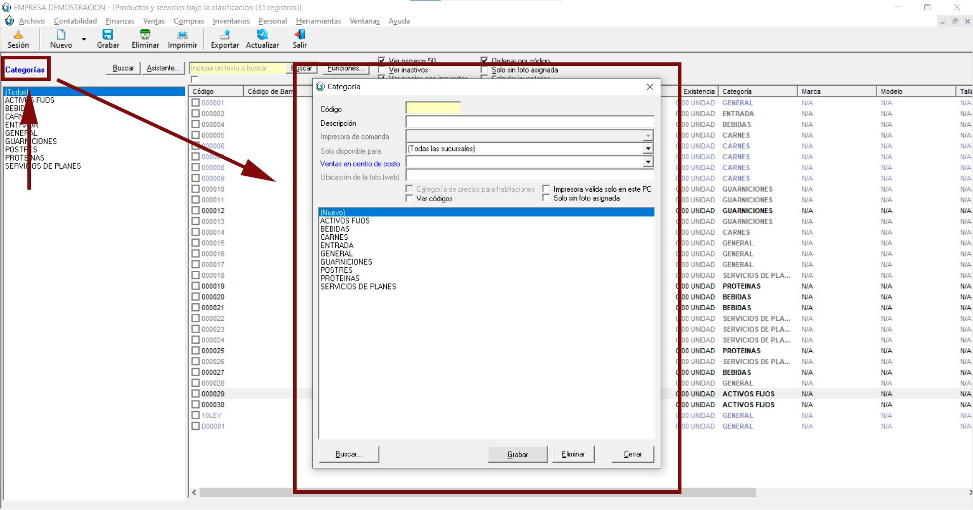 CREAR CATEGORÍAS A NECESITAR > Para crearlas hacemos doble click en el boton azul de la ventana «CATEGORIAS»…“REFERENCIA“