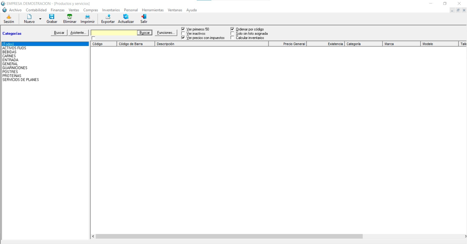 -Ingresamos al Menú > Ventas > Productos y Servicios Gastos >…“REFERENCIA“ se abrira la siguiente ventana… “REFERENCIA“